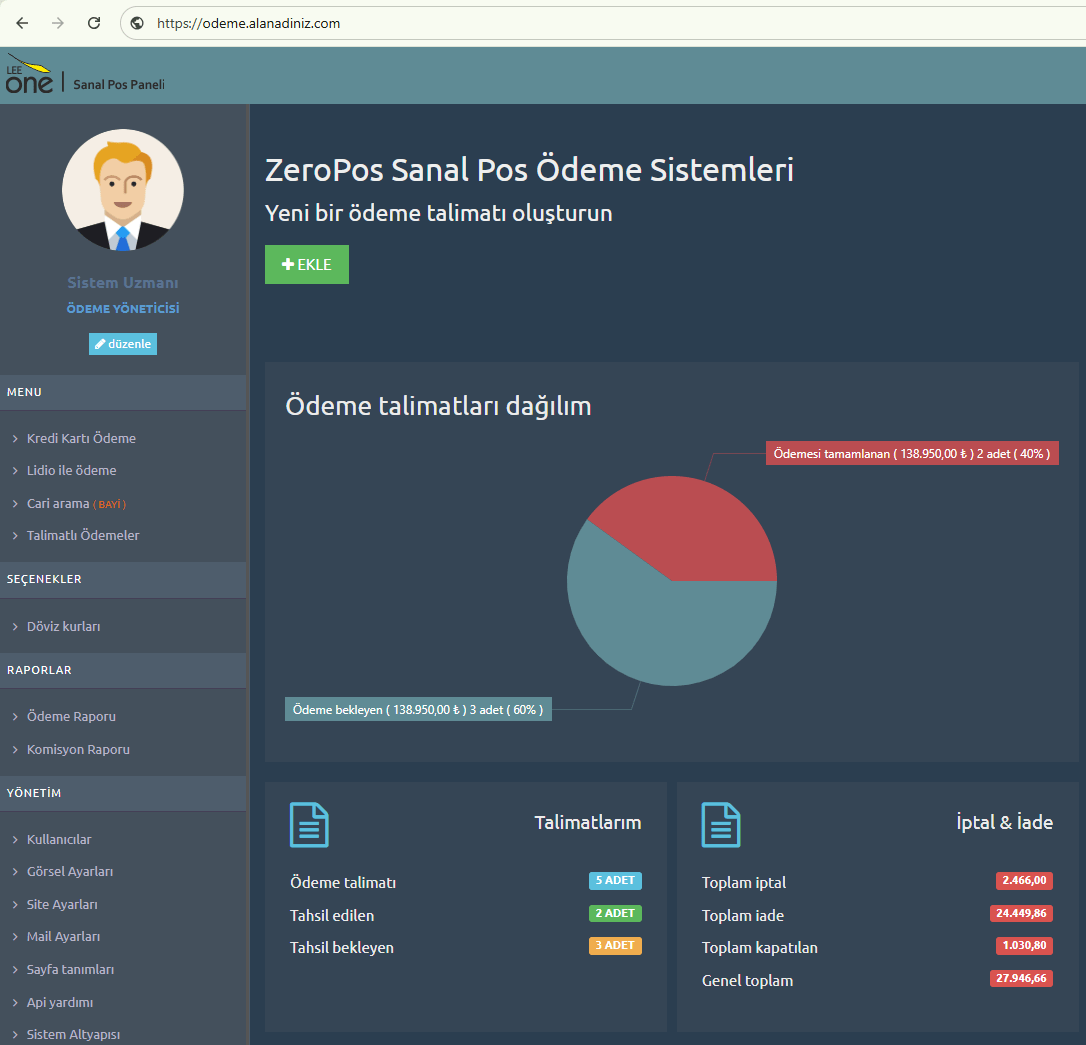 Bankalardan aldığınız pos hesaplarını e-tahsilat paneline bağlayıp direk ödeme almaya başlayabilirsiniz.