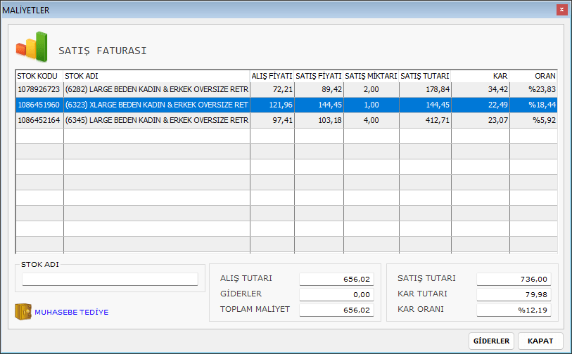 Evet, Faturayi kaydedildikten sonra faturanın maliyetlerini görebilirsiniz. Bu sayede satışını yaptığınız ürünlerden kar marjınızı çıkarmış olursunuz. Program maliyetlerin hesabını yapa iken 4 farklı yol uygulayabilirsiniz.