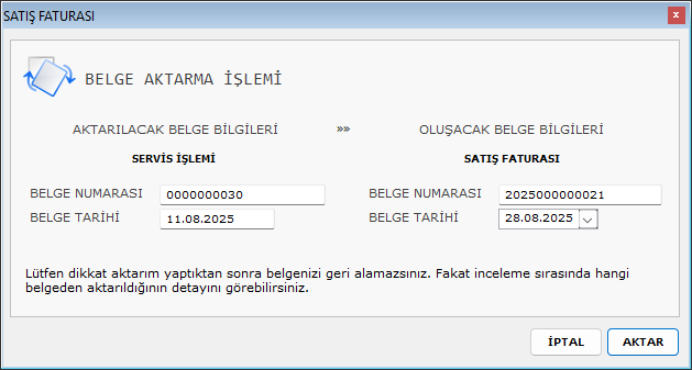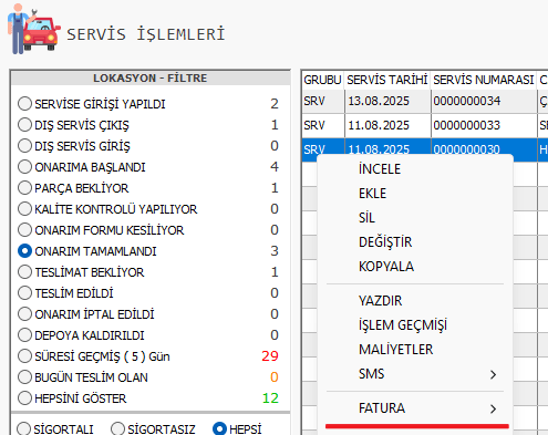 Evet. Servis hizmetlerinizi faturaya çevirebilirsiniz. iş emri ücretlendirmesinden sonra talep halinde iş emrini faturaya çevirerek kesebilirsiniz. Program cari hesapta mükerrer kayıt oluşturmadan işlemi tamamlar. Çünkü mükerrer kayıt cari hesabı çift borçlandırabilir.
